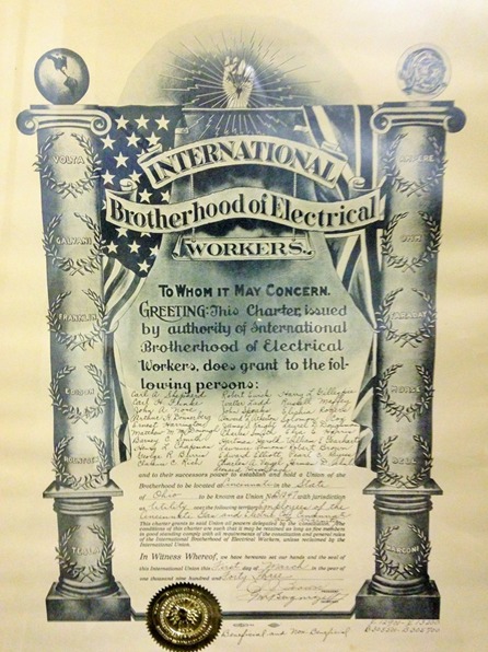 GREETING: This Charter is issued by the authority of International Brotherhood of Electrical Workers, does grant to the following persons, and to their successors, power to establish and hold a Union of the Brotherhood to be located at Cincinnati in the State of Ohio to be known as Union No. B1347 with jurisdiction as a Utility over the Employees of Cincinnati Gas and Electric Company of Cincinnati and the vicinity.